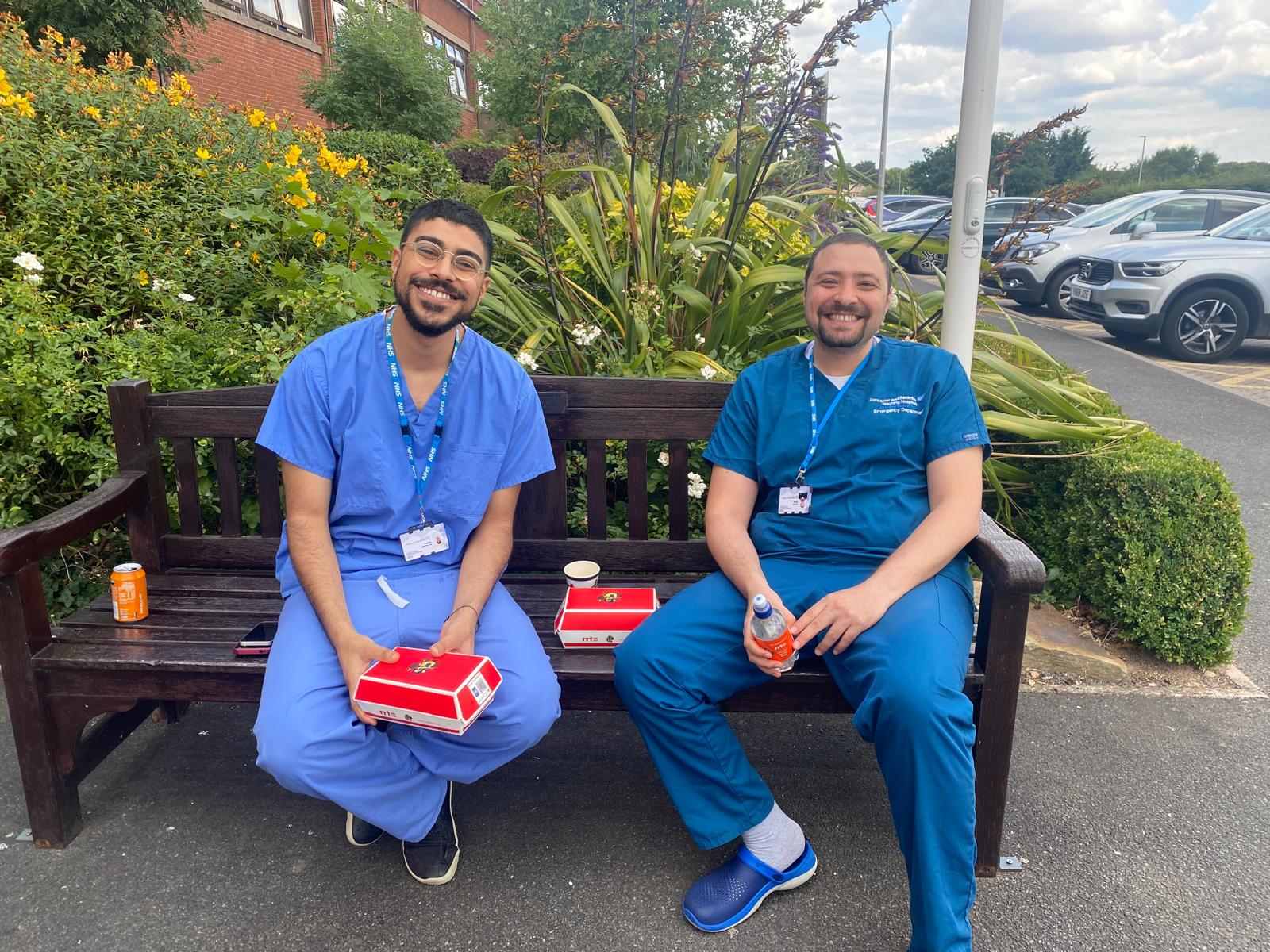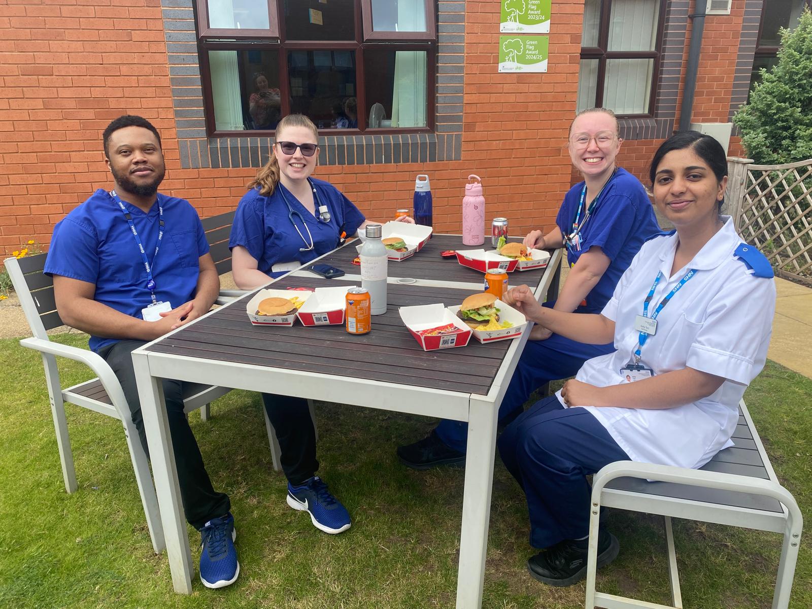 From midday, teams queued outside the Rainbow Garden at Bassetlaw Hospital to pick up their meals, which included a burger, crisps, a drink and a piece of fruit.